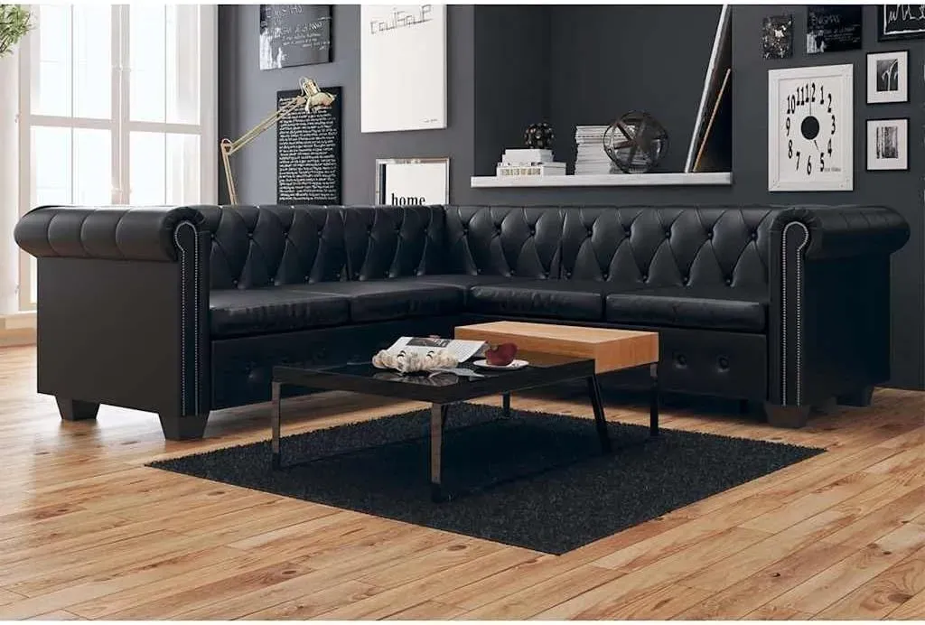 5-Seater Chesterfield Corner Sofa with Curved Arms, Faux Leather, Black