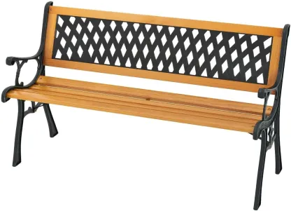 Designed for 3 People: With a width of 122 cm and depth of 32 cm, the seat accommodates up to three individuals, allowing for shared outdoor enjoyment. Ergonomic Seating: The inclined backrest and curved seat are structured to align with body contours. Armrests offer added support. Sturdy Construction: This bench features a cast metal frame and pine wood seat, enhancing support and durability. Reinforced crossbars contribute to its stability. Decorative Outdoor Bench: The back and sides have decorative patterns, adding appeal in outdoor settings such as gardens and patios. Simple Assembly: Includes all necessary accessories and instructions for quick setup. Once assembled, the bench dimensions are 126 x 53 x 73 cm (L x W x H).